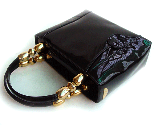 블랙컬러의 유광 소재백입니다.