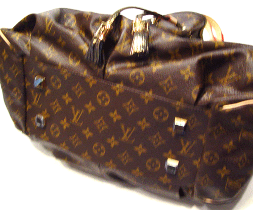 모노그램 캔버스, 천연 소가죽과 세퀸 트리밍, 마이크로파이버 라이닝 - 골드 금장 장식 - 내부에 두개의 수납공간, 지퍼 장식의 한 개의 중앙 수납공간 - 플랫 레더 핸들로 핸드백이나 숄더백으로 연출 가능 - 보호를 위한 하단의 스터드 장식