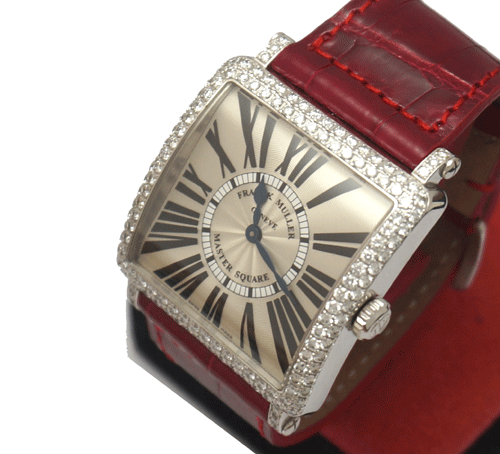 프랭크 뮬러 MASTER SQURRE 마스터 스퀘어 6002 M 소재 : 화이트 골드 + 오리지날 다이아 몬드 세팅 사이즈 : 32 * 32mm 무브먼트 : 쿼츠 (건전지) 부속품 : 자체 보증서 원산지 : 스위스