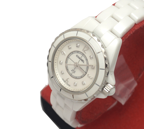 샤넬 J12 세라믹 여성 시계입니다. 사이즈 : 29mm 무브먼트: 쿼츠(베터리) 재질 : 메탈릭 세라믹 다이얼: 오리지날 포인트 다이아몬드 부속품 : 샤넬 오리지날 휴대용 케이스 원산지 : 스위스