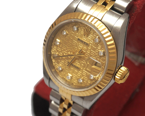 로렉스 79173 여성 콤비 시계 사이즈 : 26mm 소재 : 18k 옐로우골드 + 스틸 +10포인트 다이아몬드 오리지날 세팅 무브먼트 : 오토매틱 부속품 : 자체 보증서 원산지 : 스위스 2002년 제품입니다.