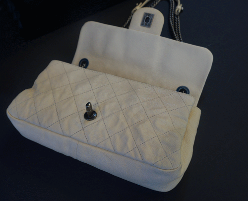 샤넬 체인 숄더백입니다. 사용으로 인한 바닥 모서리 마모감, 때탐 있습니다. 제품상태등급 : A- 사이즈 : 26.5 * 15 * 6cm 부속품 : 개런티 카드, 북렛, 더스트