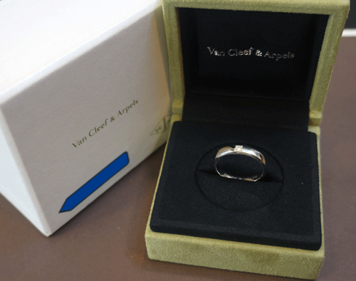 반클리프 앤 아펠 뚜쥬르 에또왈 웨딩 반지입니다. 소재 : 플랠티늄, 1개의 포인트 다이아몬드 에스텔 아펠과 알프레드 반 클리프