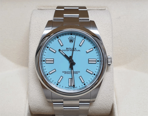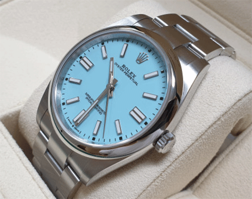 로렉스 124300 오이스터 퍼페추얼 OP41(한정품) 다이얼 : 더콰이즈 블루 제품상태등급 : 미사용품 사이즈 : 41mm 무브먼트 : 오토매틱 부속품 : 박스, 보증서 원산지 : 스위스 구매 시기 : 2021년 8월 (한정으로 나온 제품으로 소장 가치 있습니다.)