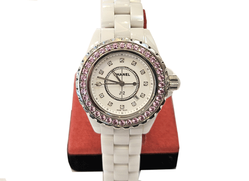 샤넬 j12 화이트 세라믹 핑크 사파이어 시계(33mm)